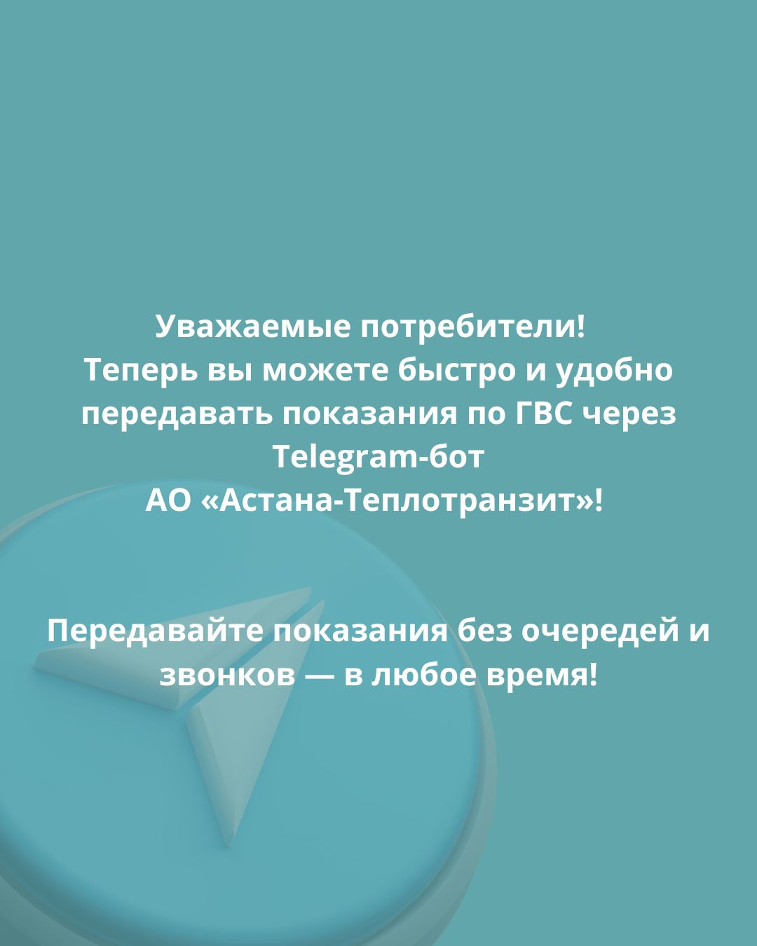 О порядке, сроках заключения договоров с потребителями города Астаны АО «Астана — Теплотранзит» уведомит дополнительно — путём размещения уведомления на сайте www.a-tranzit.kz, а также в СМИ и социальных сетях.